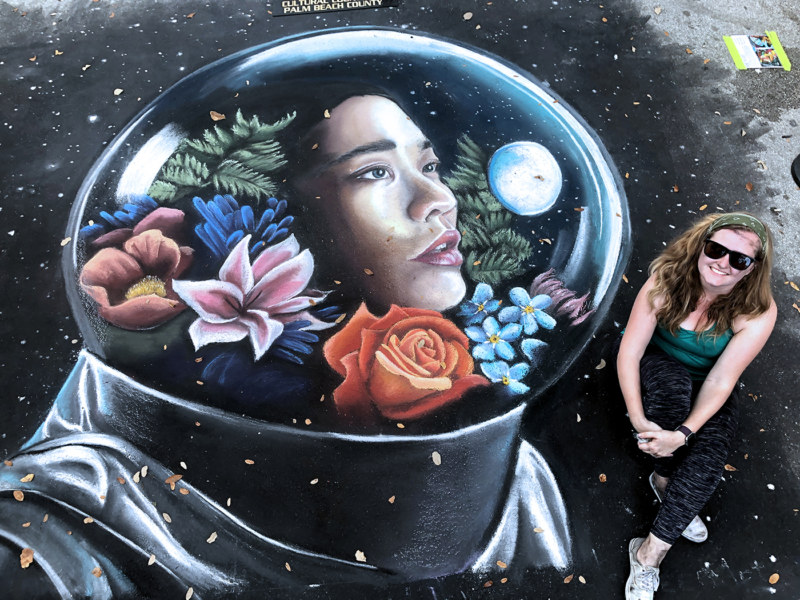 For the Street Painting Festival in Lake Worth, I love recreating inspirational pieces for all to see. I have saved this image for a while now and keep coming back to it. I typically chalk portraits of women with flowers. But this one told a story and held a fantastical element that I could not escape. When I asked Anya if I could chalk the piece I was so pleased when she agreed. I think it is important for artists to collaborate this way and inspire one another.