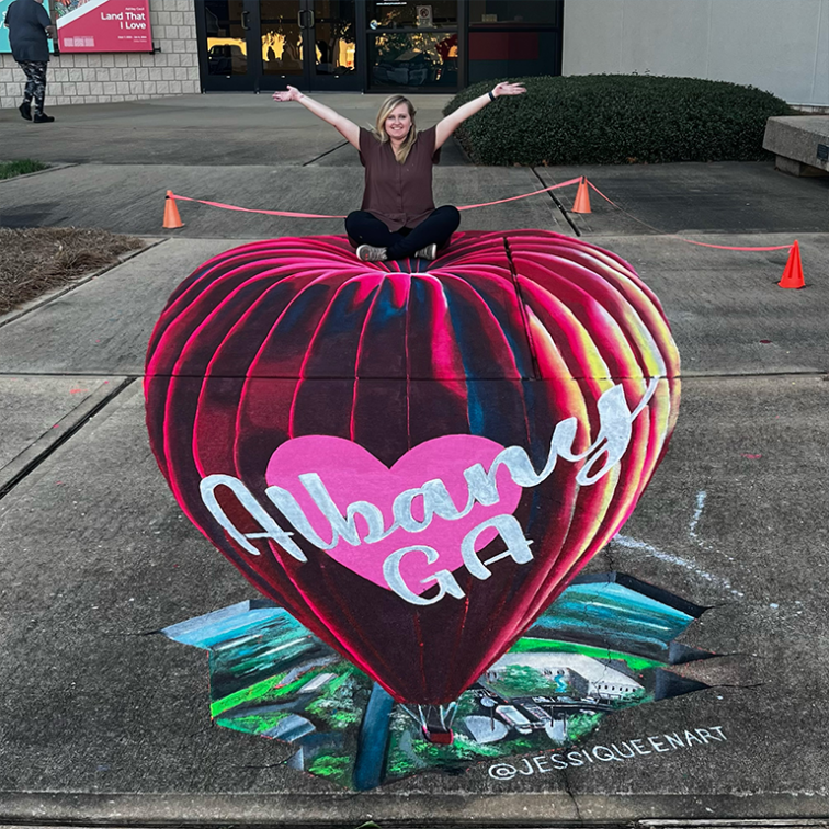 Heart of Albany Details about this project When: 5 Nov ’23What: 3D, Chalk ArtWho: Albany Museum of Art In space Greystone Power 3D 2023