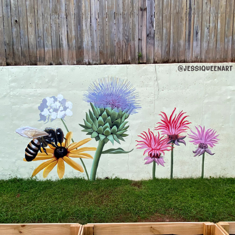 We created a nature filled mural for the garden wall at the new location of Montessori In Town in Atlanta. Team members included Natalie Enzmann, Melissa Enzmann, and Zach Herndon.